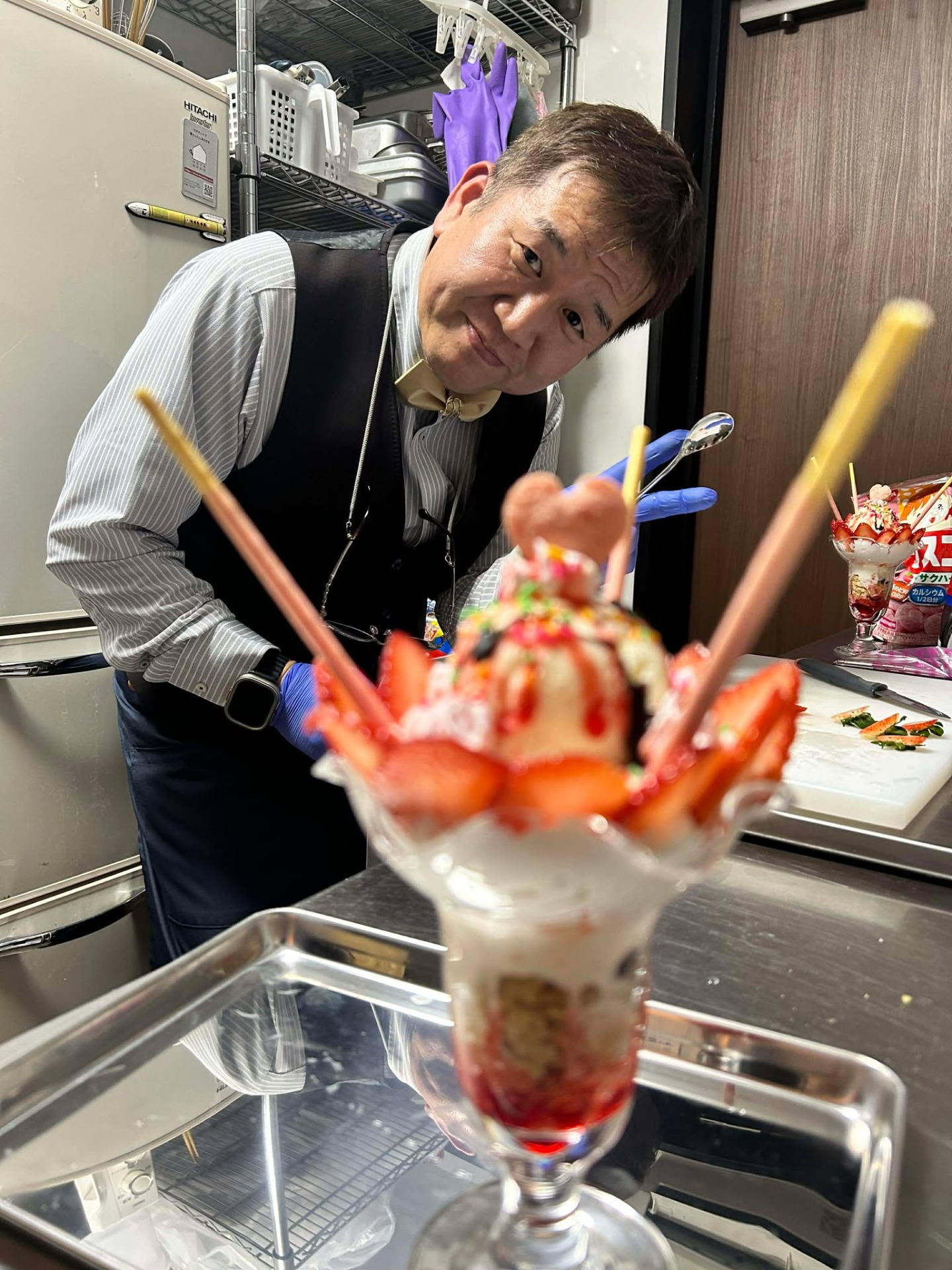 LAZOオーナーの平川さんのいちごパフェは大人気だそうです!